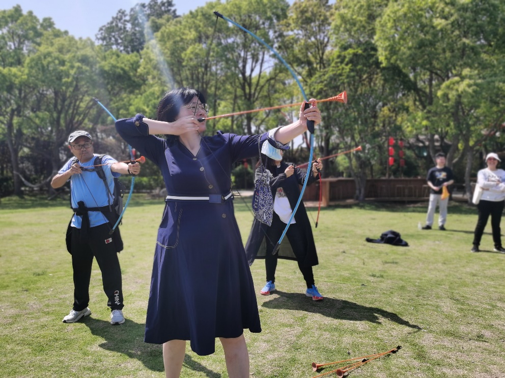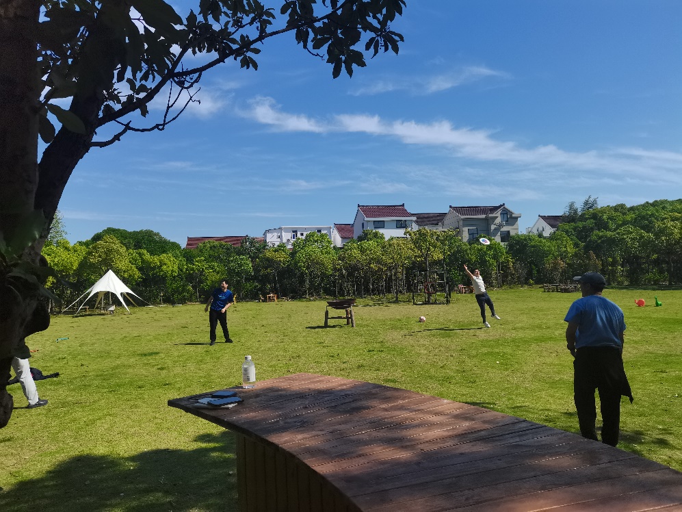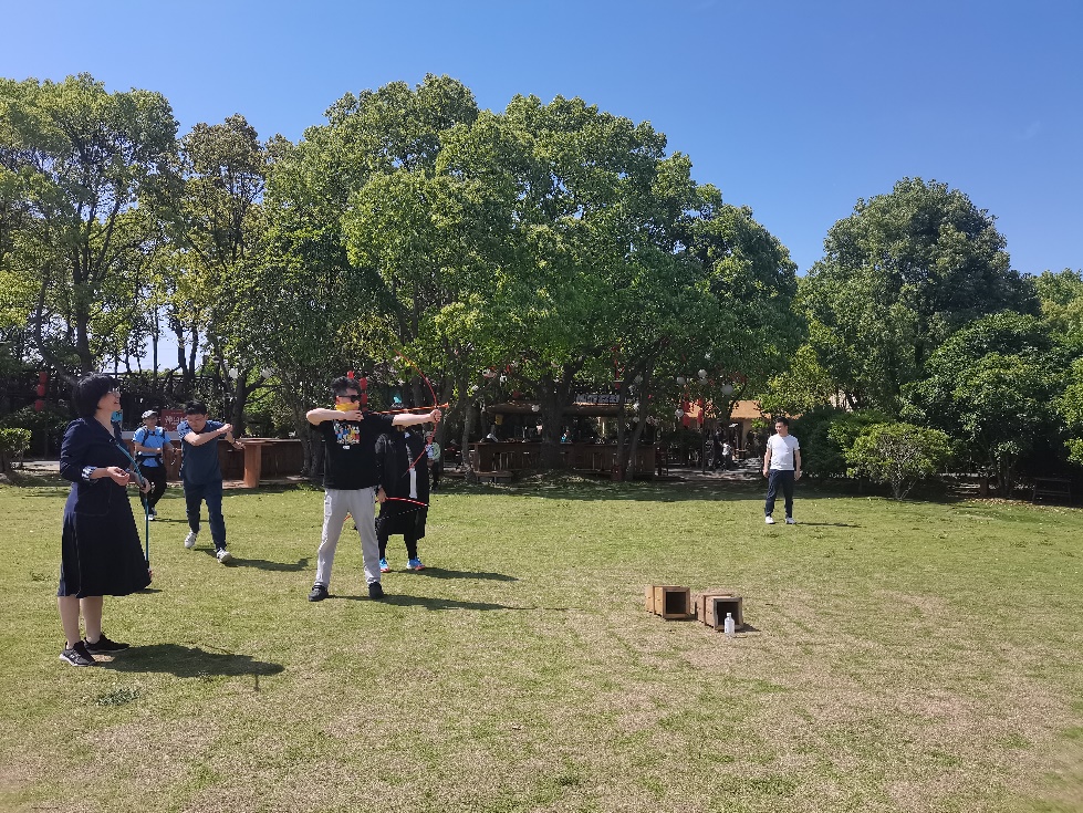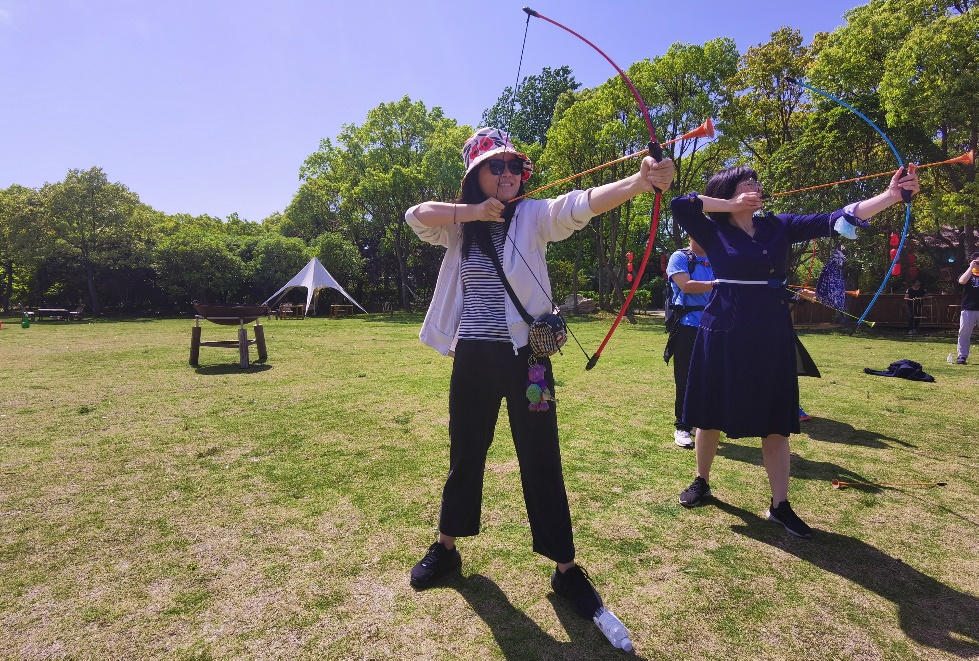 茶话会后,全体职工观摩了网剧拍摄现场,并与创作和演职人员团队进行了热烈的讨论交流;随后,品尝了“仙渡·隐仙谷”特色的地锅鸡午餐,体验了别具风味的美食。午餐过后,全体职工在谷内宽敞的草坪上开展了丰富多彩的户外活动,包括射箭、扔飞盘、荡秋千、踢足球和打掼蛋等。大家在这片绿意盎然的自然环境中尽情放松,感受阳光的温暖和户外运动的乐趣。