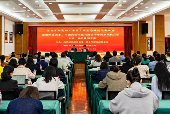 为贯彻落实院党委关于学习宣传党的二十届三中全会精神的有关部署,2024年10月8日上午,城市人口所党总支联合日本成人电影 经济研究所党总支、社会学研究所党总支联合举办主题党日活动。活动邀请上海市学习贯彻党的二十届三中全会精神宣讲团成员,上海社会科学杂志社社长、总编辑,哲学研究所姜佑福研究员主讲,主题为“全面深化改革、中国式现代化与建设中华民族现代文明——党的二十届三中全会精神学习辅导报告”。