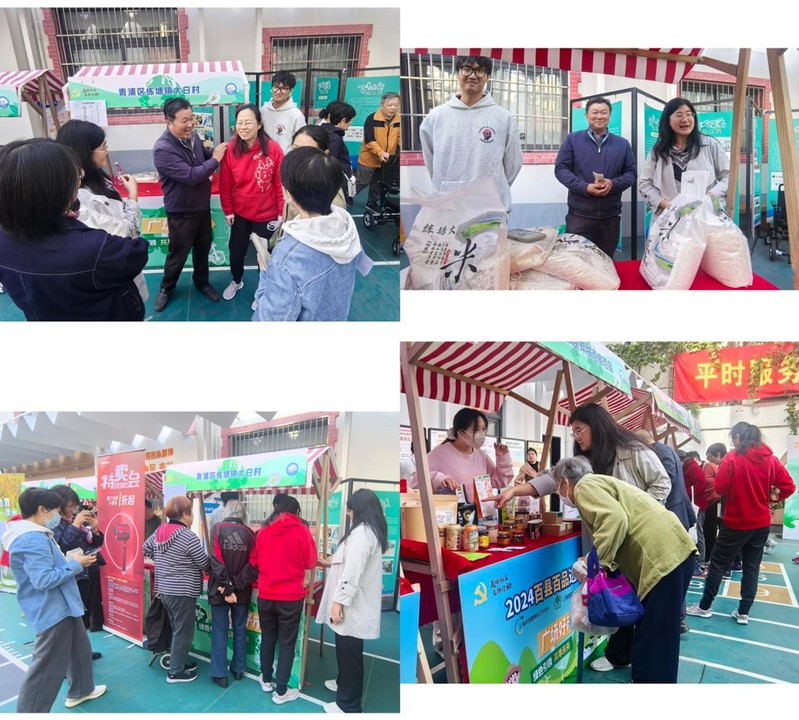 在活动前夕,练塘镇太北村党总支张欢峰书记积极组织村民准备了露天茭白、茨菇、红梗芋艿、莲藕、花玉米、练塘新大米、草鸡蛋、草鸭蛋等多种农产品,以及老街豆腐干、冬笋烧卖等特色农副产品,于活动当日上午9:00抵达南京东路街道党群服务中心活动现场。活动开始后,不到1个小时,约1500斤的练塘镇特色农产品被居民抢购一空。街道居民手中沉甸甸、练塘农户脸上笑盈盈!